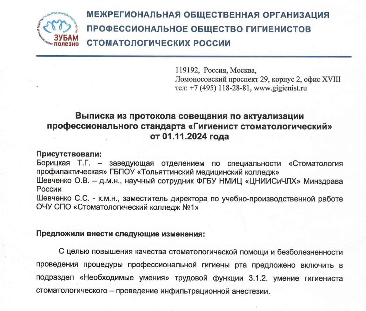 1 ноября 2024 прошло совещание рабочей группы Профессионального общества гигиенистов стоматологических по актуализации профессионального стандарта "Гигиенист стоматологический"
